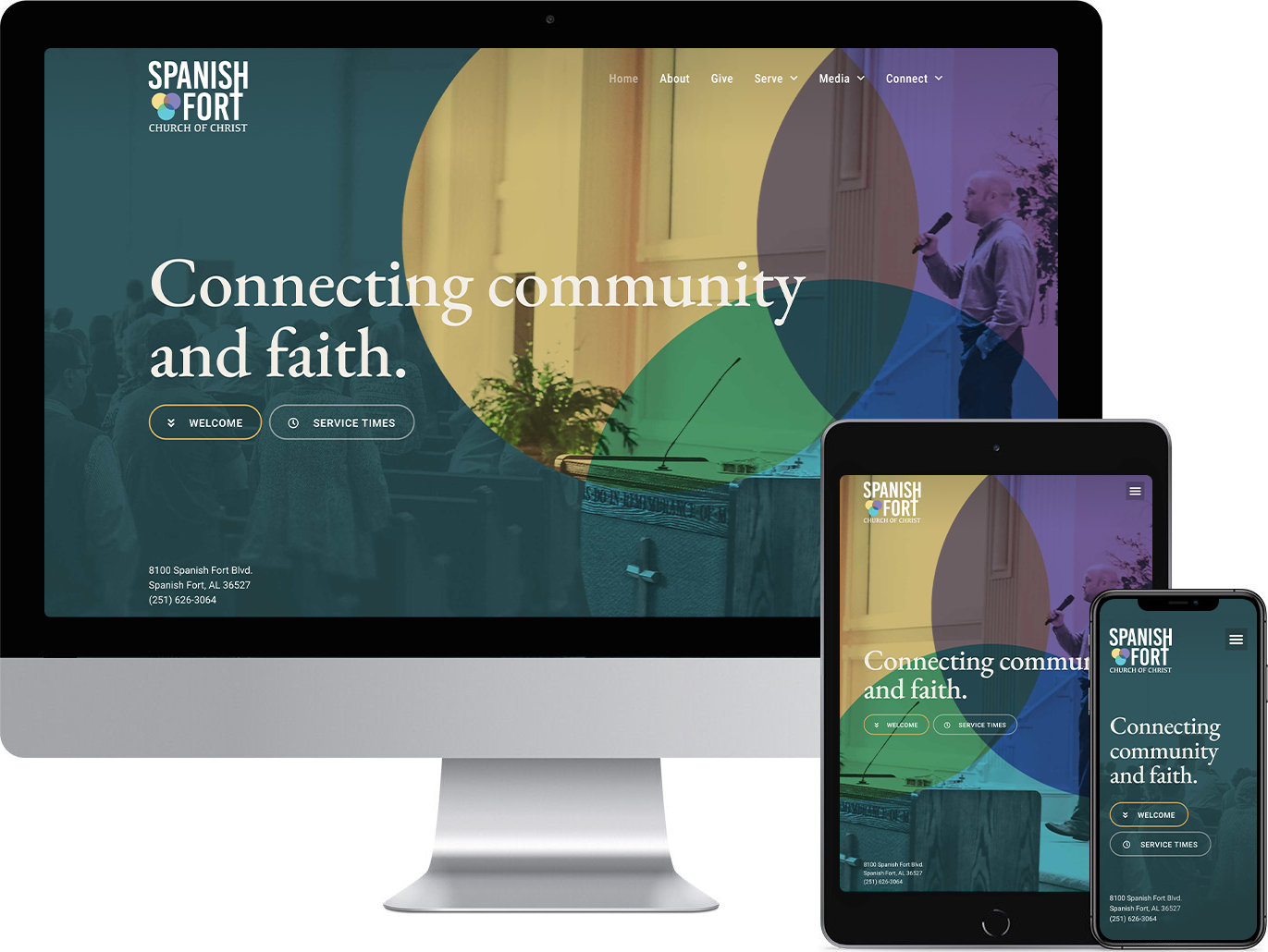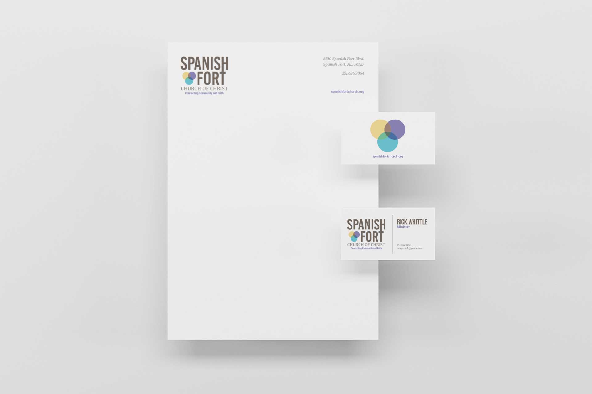 In what can often seem a fractured, disconnected world, there’s a heightened importance placed on connection. For the rebranding of this Church of Christ congregation, that sense of connection was our focus. Each aspect of the work for this client is represented in the logo, which overlaps circles in a Venn diagram of the places where faith connects with community.